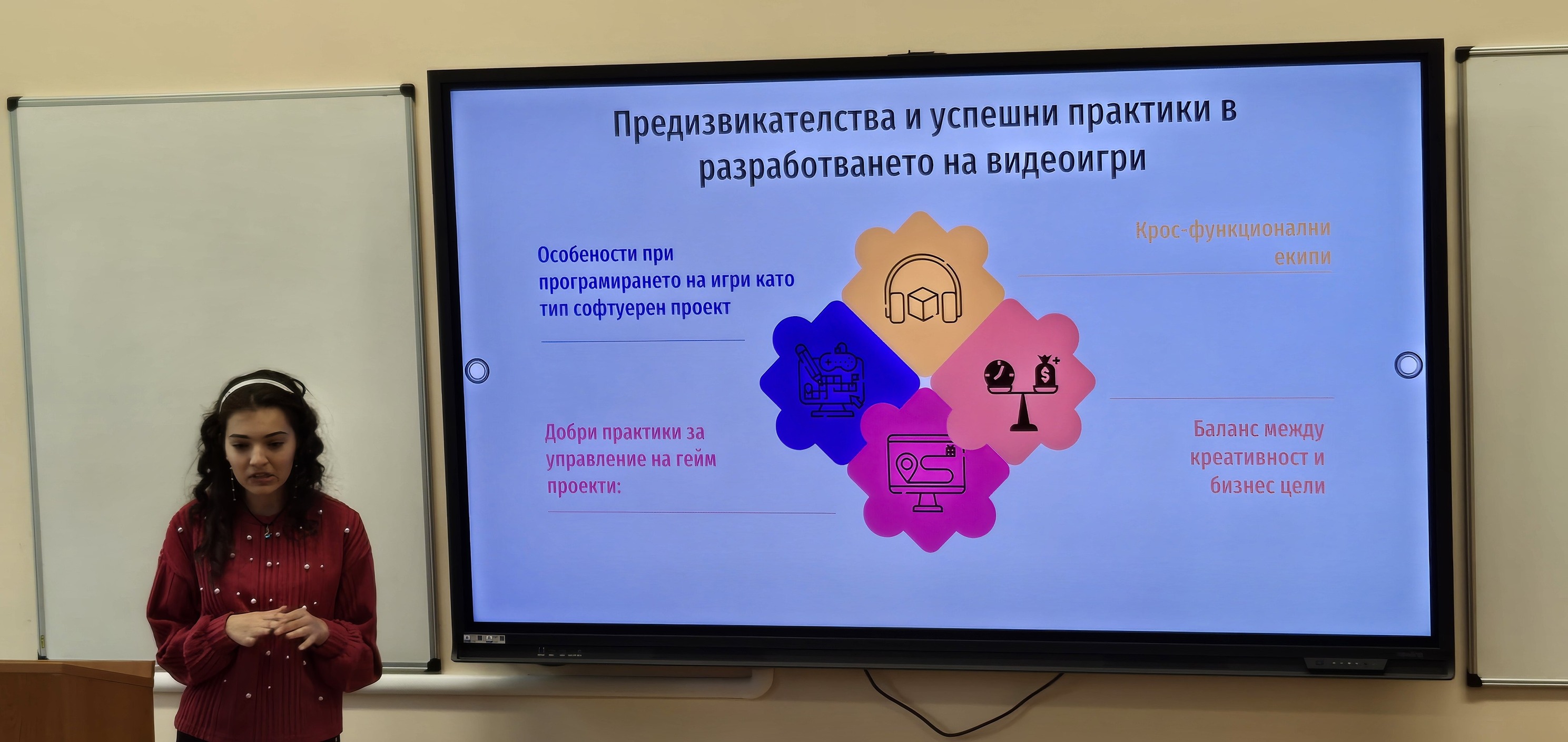 На 21.05. 2025 г. в катедра „Информатика и информационни технологии" към Русенски университет „Ангел Кънчев" бяха представени студентски разработки на професионален клуб „Създаване на компютърни игри".