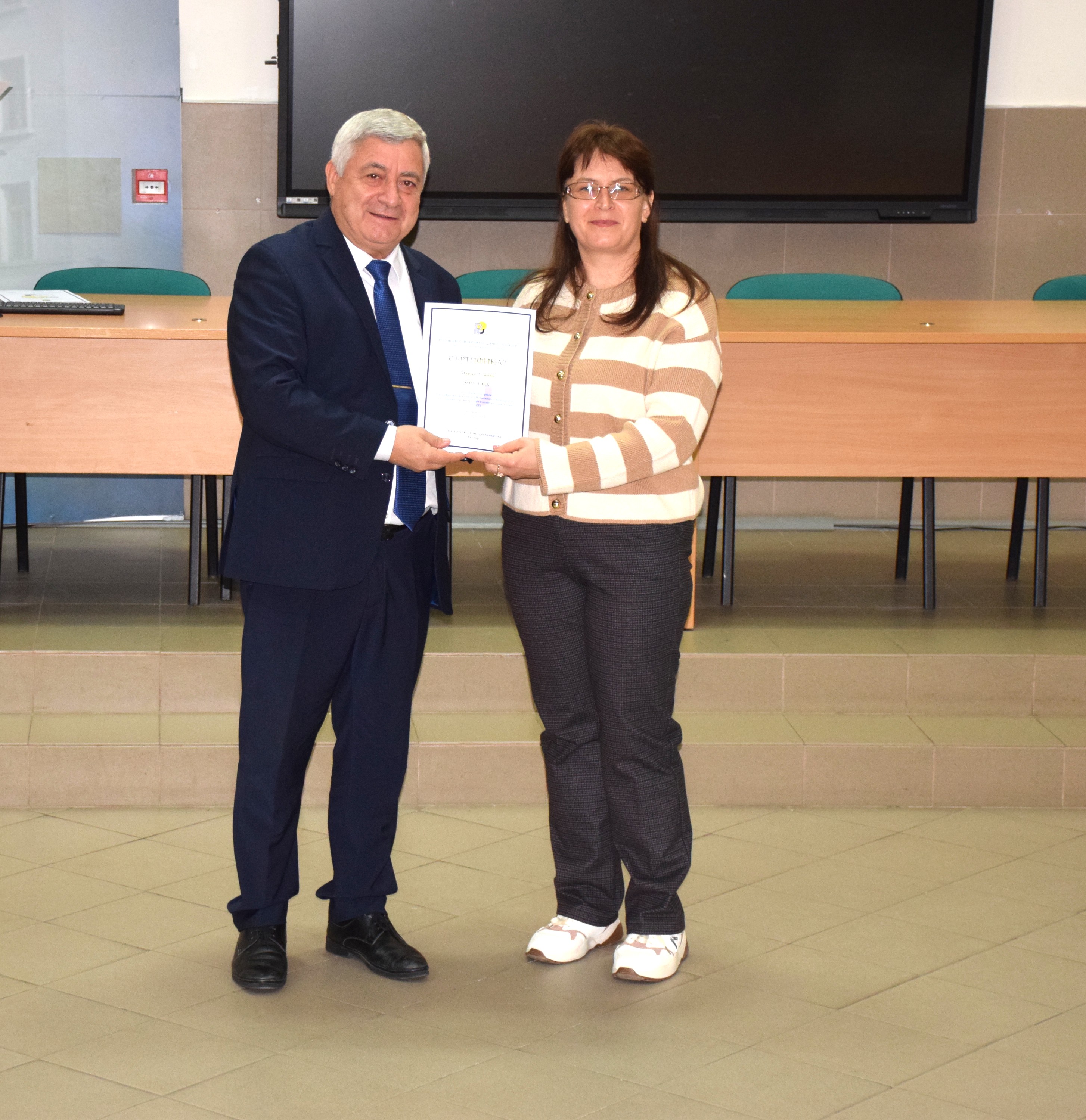 The certificates were presented to the teachers by Academician Hristo Beloev, DscEng, Honourary Rector and Chairman of the General Assembly of the University of Ruse, and the certificates to the students were presented by the Rector of the University of Ruse, Assoc. Prof. Desislava Atanasova, PhD. The event was attended by the Vice-Rector for International Cooperation, Assoc. Prof. Galina Ivanova, PhD, Prof. Yuliana Popova, PhD and Assoc. Prof. Mira Dushkova, PhD, Head of the Department of Bulgarian Language and Culture.