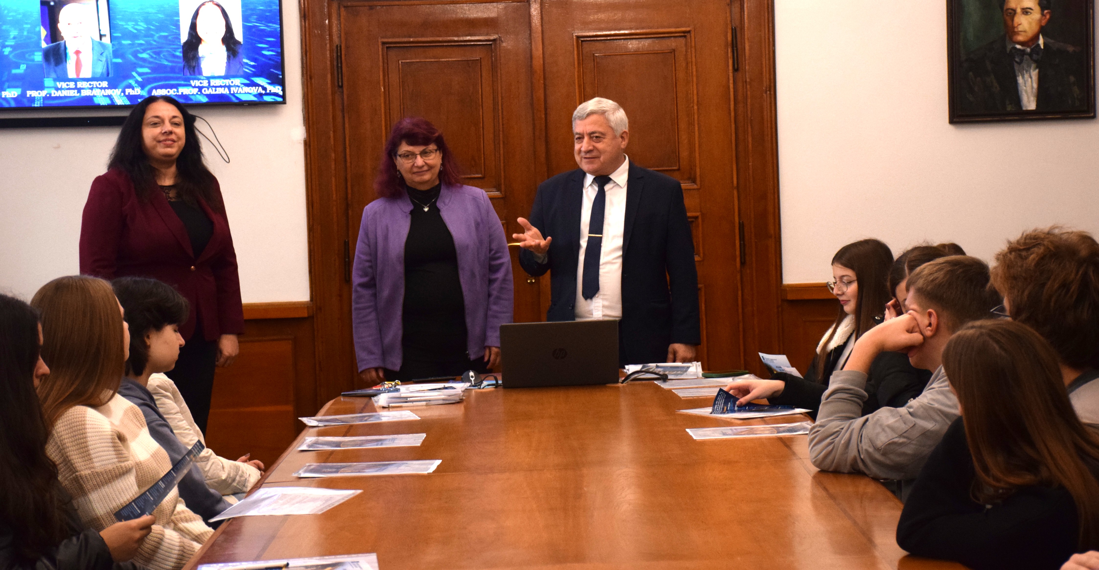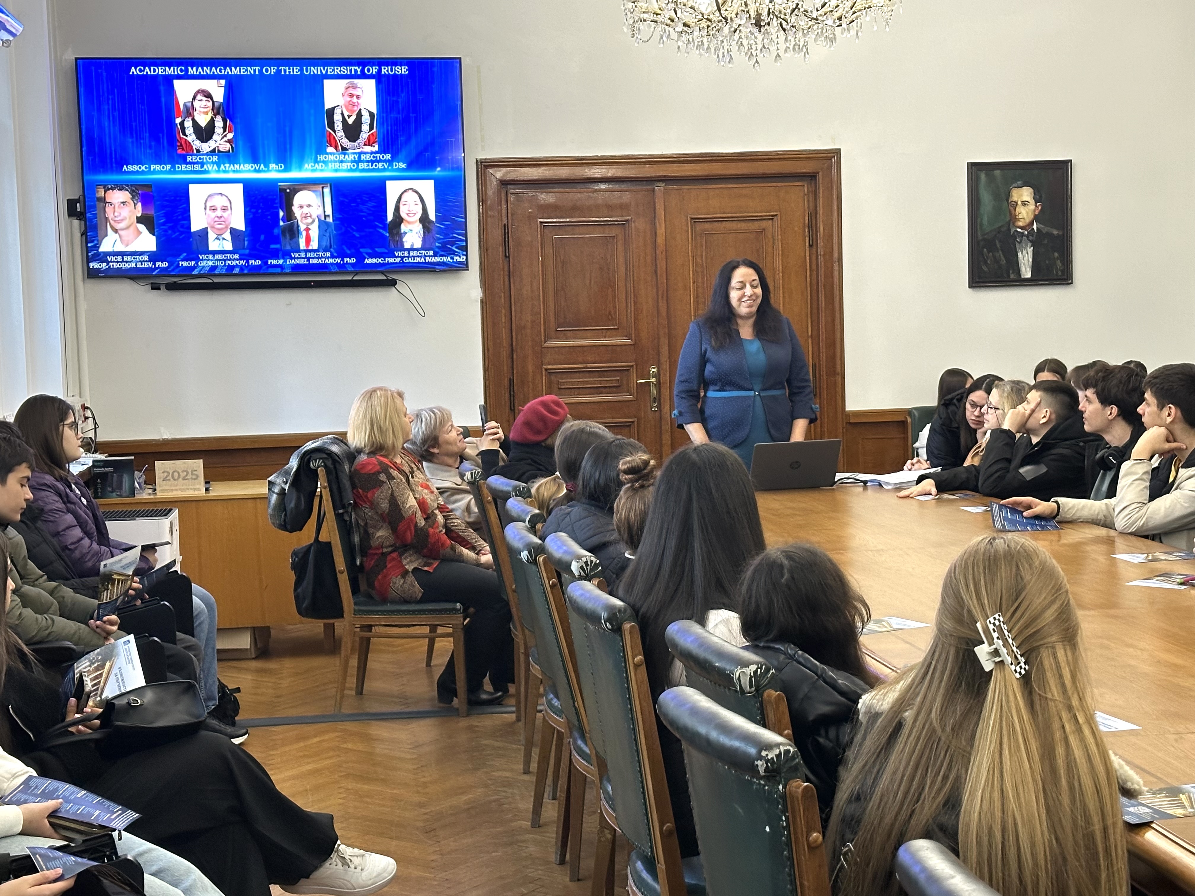 In her welcoming speech, Assoc. Prof. Atanasova, PhD expressed her delight at the opportunity for the students and their teachers to study at the University of Ruse. She encouraged them to continue boldly forward and shared that it would be an honor for the university to accept them as students.