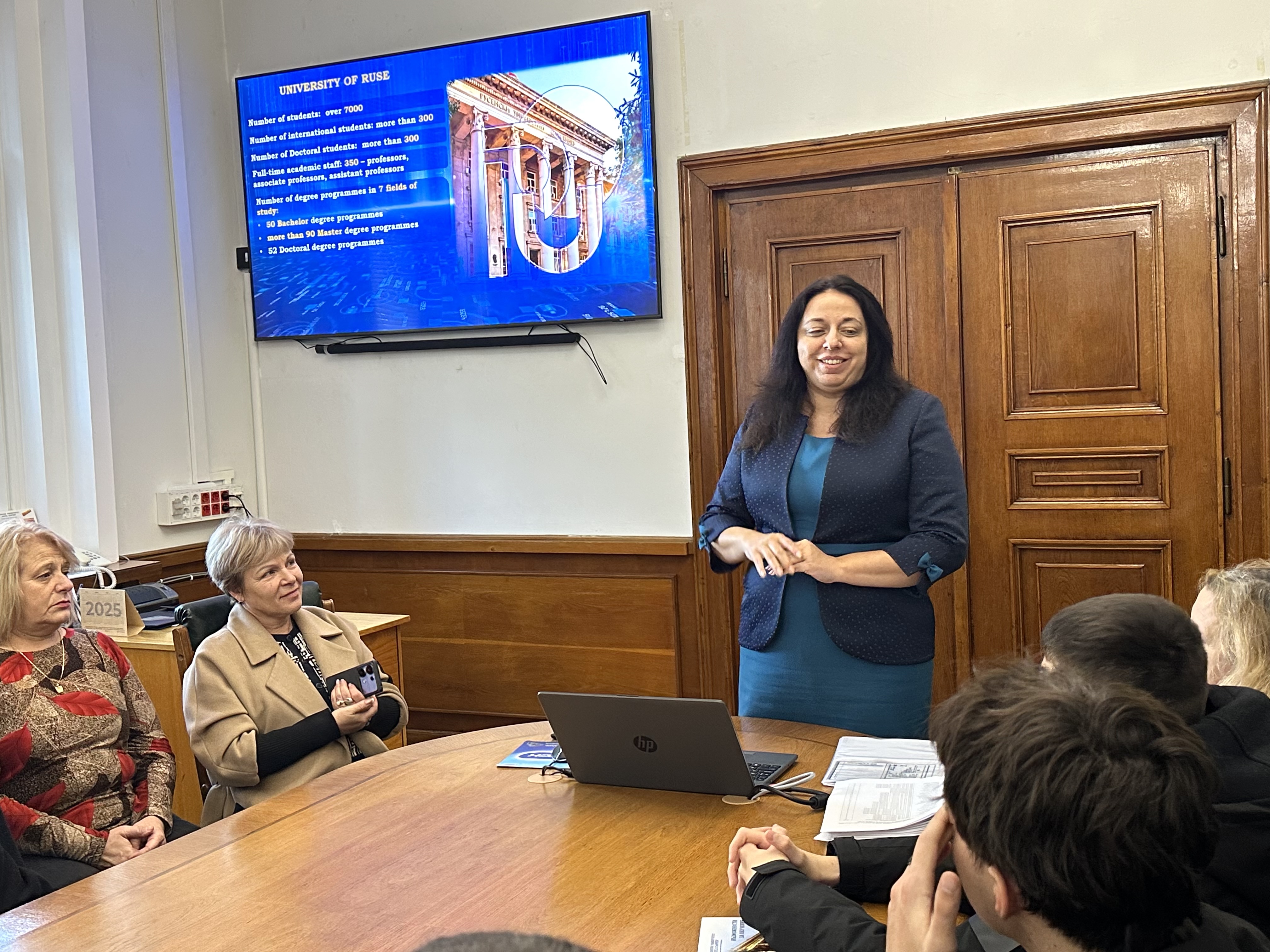 Associate Professor Mira Dushkova, PhD Head of the Department of Bulgarian Language, Literature, History and Arts, presented the training programmes for students and teachers, as well as the cultural and historical programme, which includes visits to all major museums and landmarks in Ruse, as well as excursions in the surrounding area.
