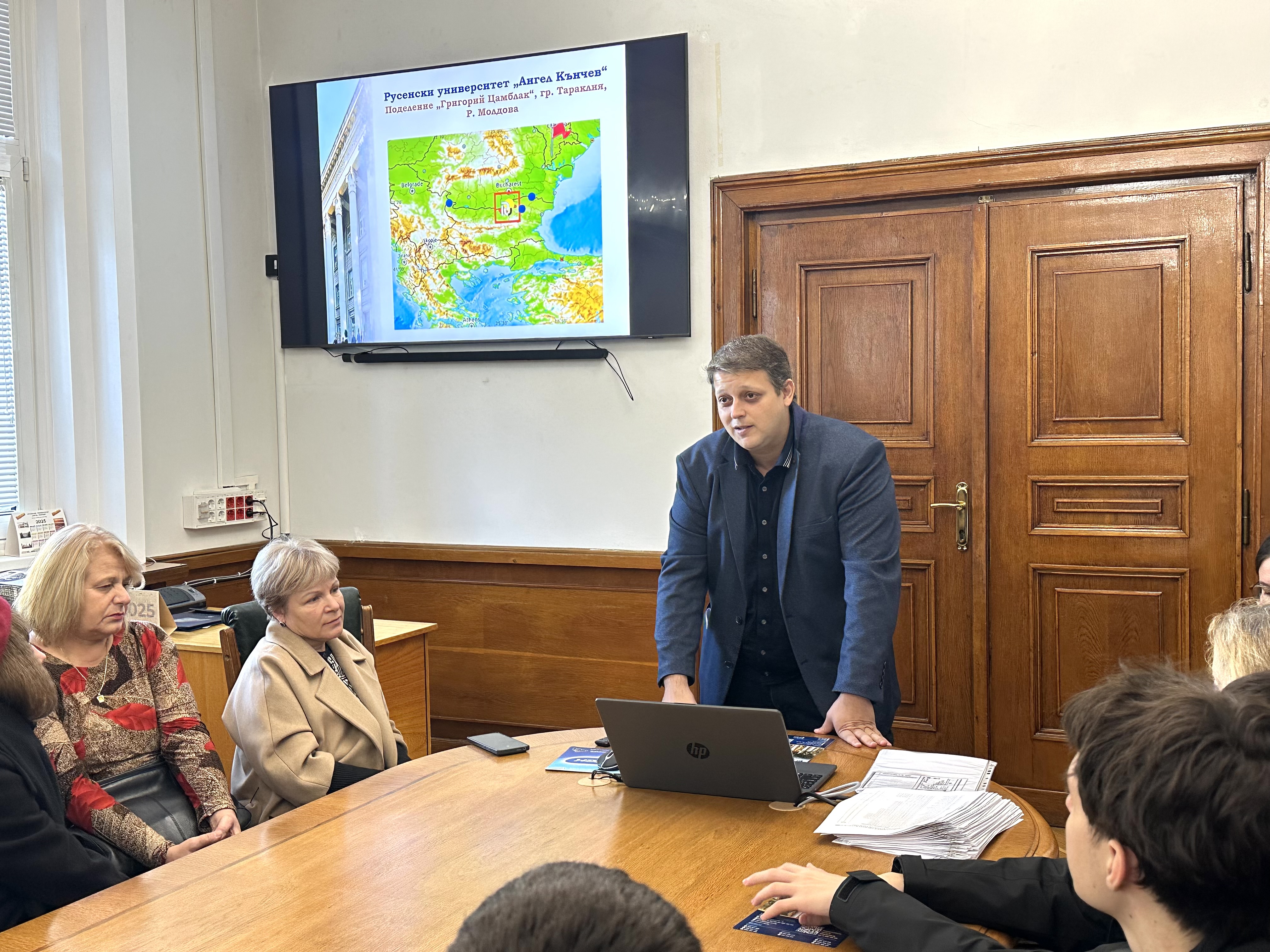 The head of the Student Admissions Department, Associate Professor Boris Kostov, PhD presented the opportunities for studying at the University of Ruse, and Associate Professor Valentina Vasileva, PhD director of the University of Ruse branch in Taraclia, Moldova, presented the opportunities for studying there.