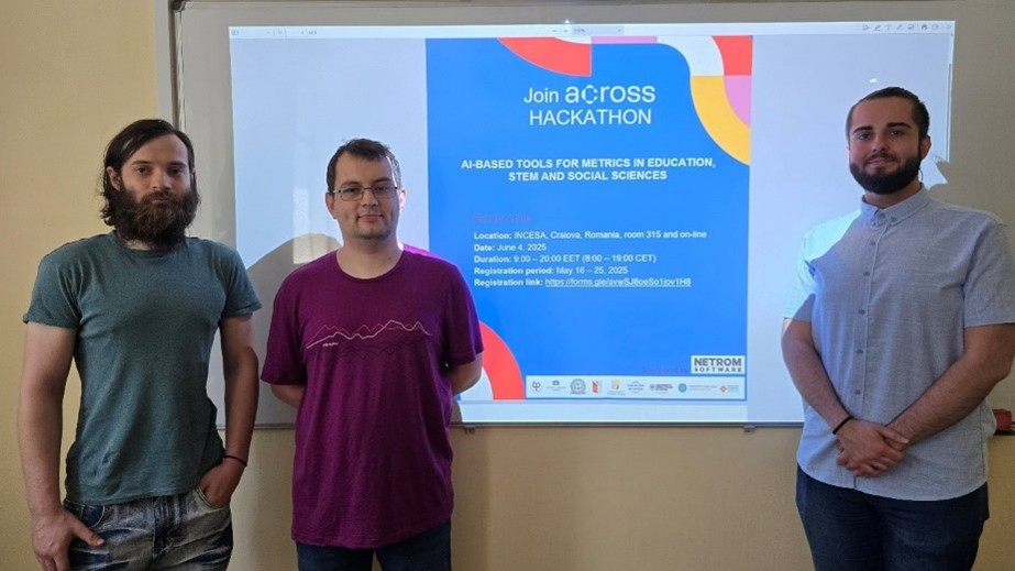 The team of Hackathon participants from the Department of Informatics and Information Technologies of the University of Ruse - Martin Dzhurov, Kristian Spasov and Assistant Professor Dr. Vasil Kozov developed an AI classifier for scientific publications, their own model trained on a large corpus of real scientific data. The developed product won second place among 10 university teams from Romania, Spain, Germany and Italy.